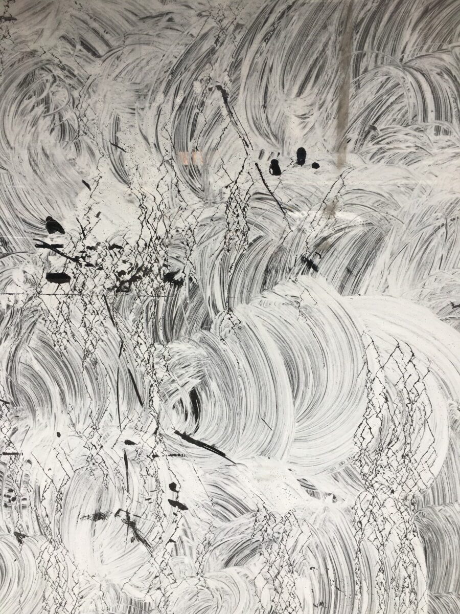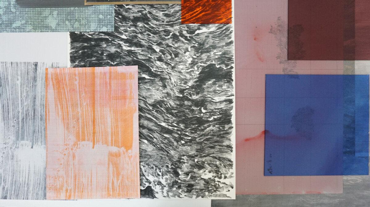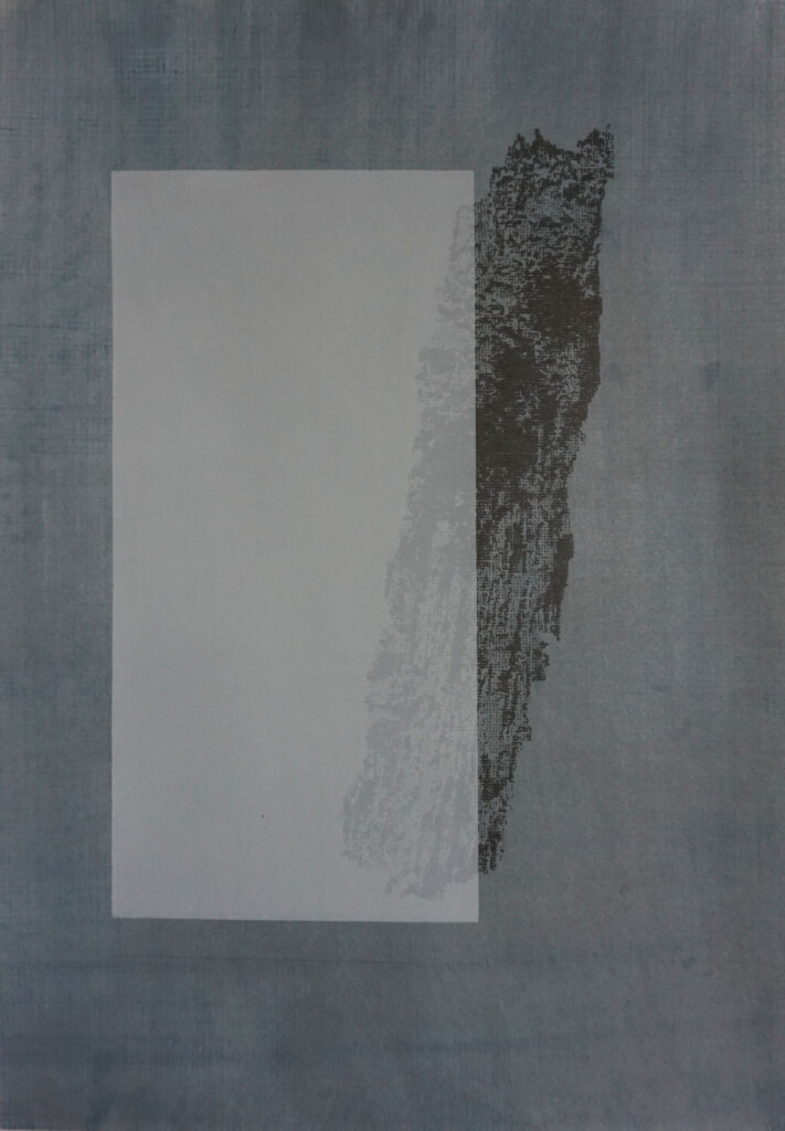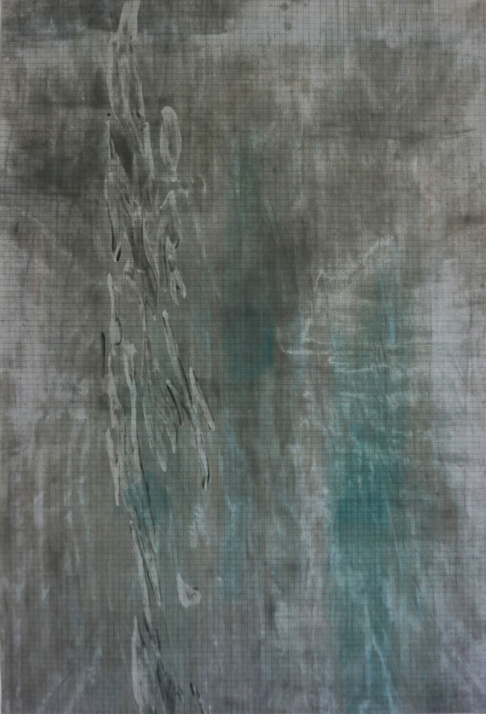 Hier la pluie, encre, graphite et sérigraphie, 100x70cm